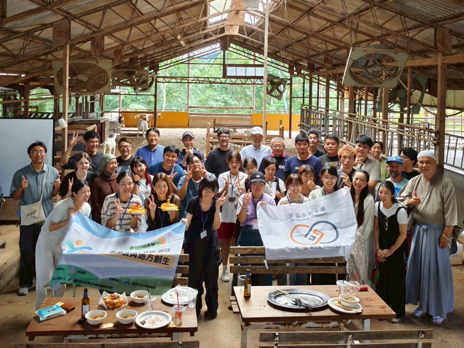 6月15日舉辦的「台日岡山美食文化交流宴會」,是此次研修的壓軸亮點。活動於岡山郊區 rural caprine 山羊農場舉行,學生以高雄岡山羊肉爐為靈感,結合在地羊肉與台灣藥膳包,烹調跨國風味料理,並介紹台灣岡山的歷史與羊肉爐起源,傳遞料理背後的文化精神。料理過程中,中山大學與岡山大學學生合作,並邀請印尼與美國留學生參與。現場另有返鄉青年展示「岡山方言貼紙」,以趣味方式推廣地方語言,啟發學生思考地方創生可從生活細節出發。值得一提的是,台灣岡山「剛好販賣所」團隊跨海參與,與日本岡山居民共聚餐桌,透過美食交流深化兩地情感,整場氣氛熱烈溫暖,羊肉爐成為凝聚情感的媒介,展現美食與地方創生結合的最佳實踐。
