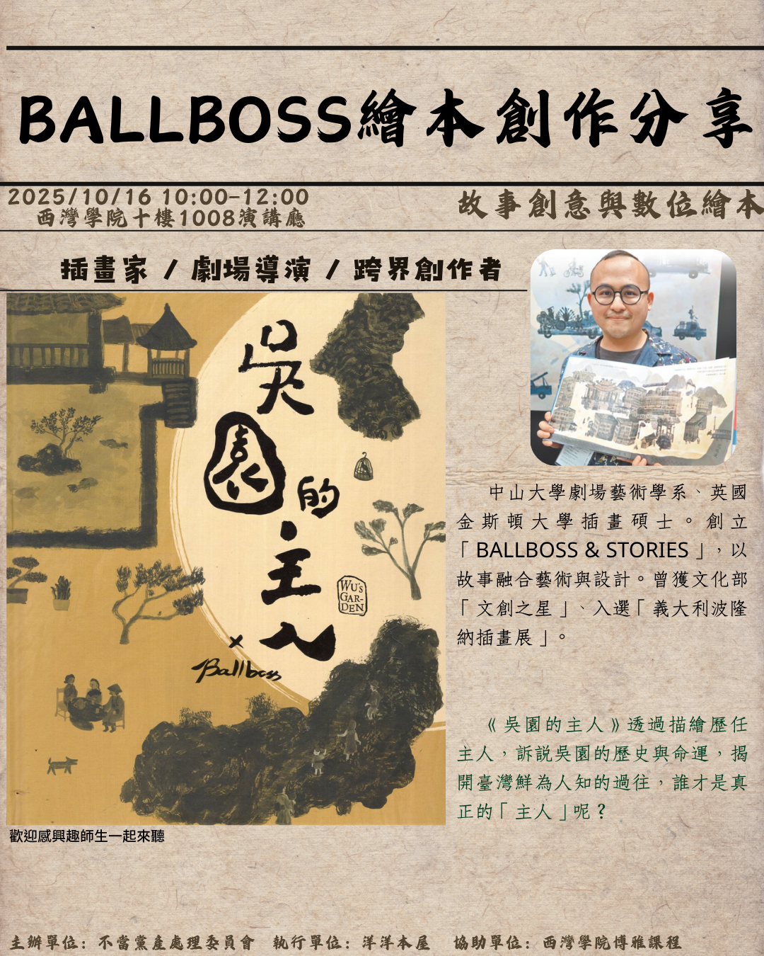【演講】BALLBOSS繪本創作分享(歡迎感興趣的師生一起來聽)