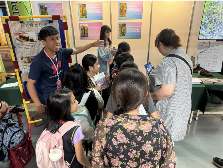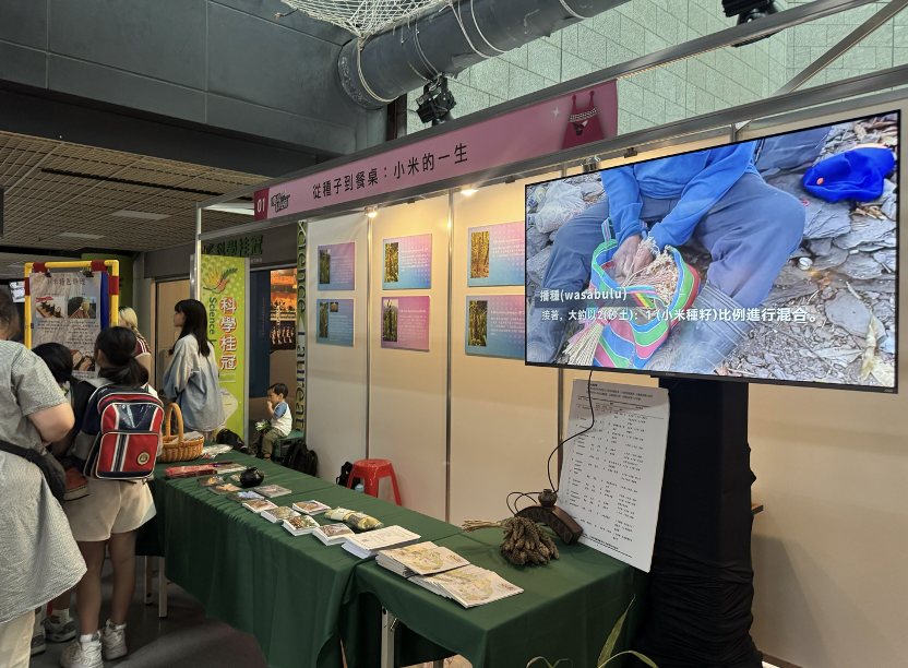 透過這門微學分課程,不僅強化本專班學生的文化理解,也讓他們在科普、展示、公共參與三者間,獲得完整的跨域學習成果。 原住民族專班學生王湘晨表示,這次參與科學節是她第一次在大型公共場域向民眾講解文化知識,起初因不熟悉如何面對觀眾而相當緊張。然而,透過課程的腳本練習、反覆試講與實際上場的磨練,她逐漸掌握節奏,並找到適合自己的表達方式。她分享,在準備過程中,她才真正深入理解小米文化的歷史、祭儀與耕作細節,從查閱資料、向部落家人請教,到重新組織語句向民眾轉譯,這一連串的學習讓她不僅更加認同自身文化,也在表達與思考上獲得明顯成長。「當我看見民眾專心聽我介紹小米時,突然覺得所有焦慮和努力都變得很值得。」她說,這次經驗讓她理解文化傳遞的重要性,也更願意走出舒適圈。
