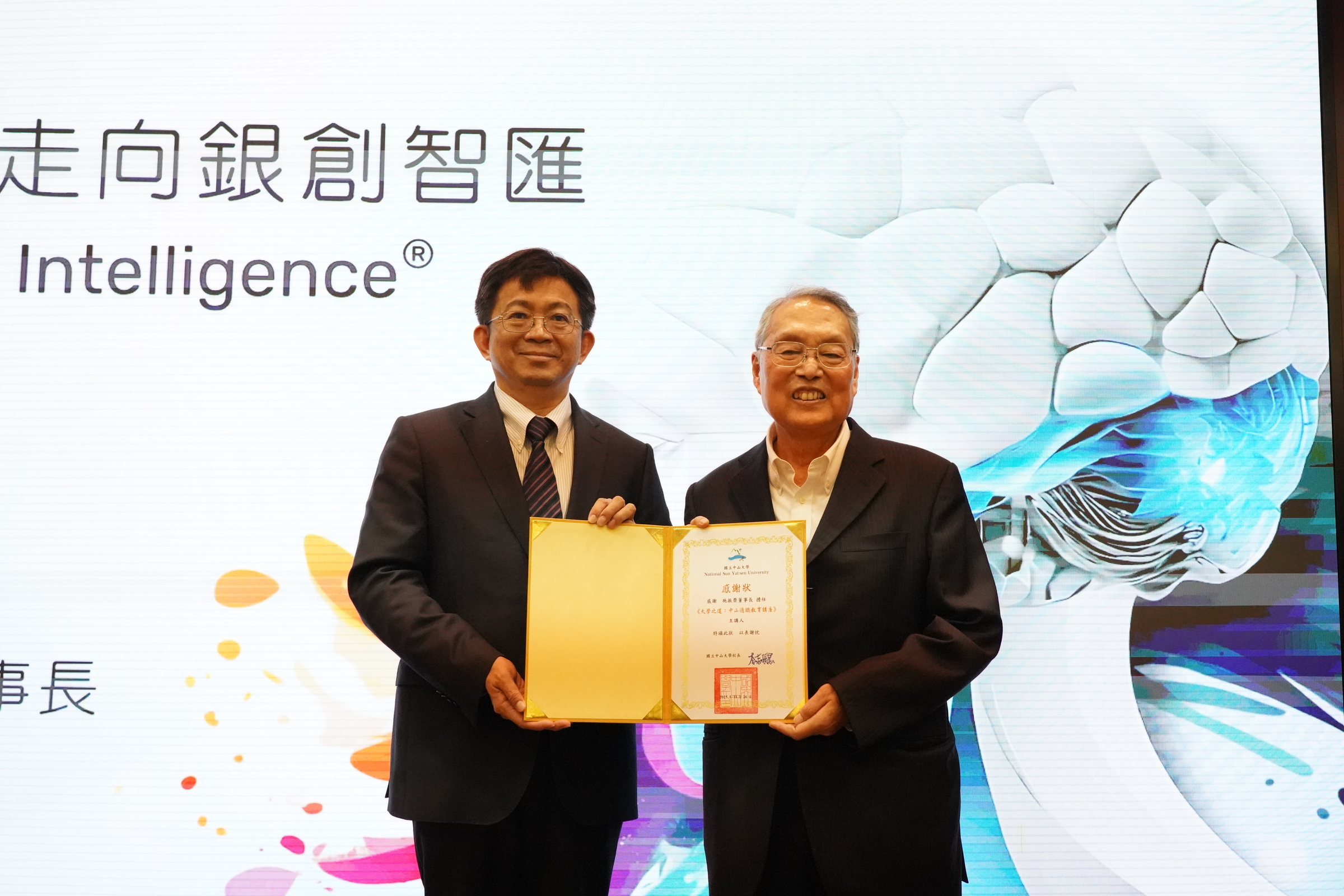 本次講座從科技、產業、人文與社會等多重視角切入,引導學生思考高齡化世界的新挑戰與新機會,也展現中山大學持續推動公共議題、永續創新與跨領域教育的承諾。施振榮董事長以八十歲之齡仍持續投身高齡創新領域的行動勉勵與會者:「無論你是誰、來自哪裡,每個人都有一個共同的目標,那就是健康長壽。」