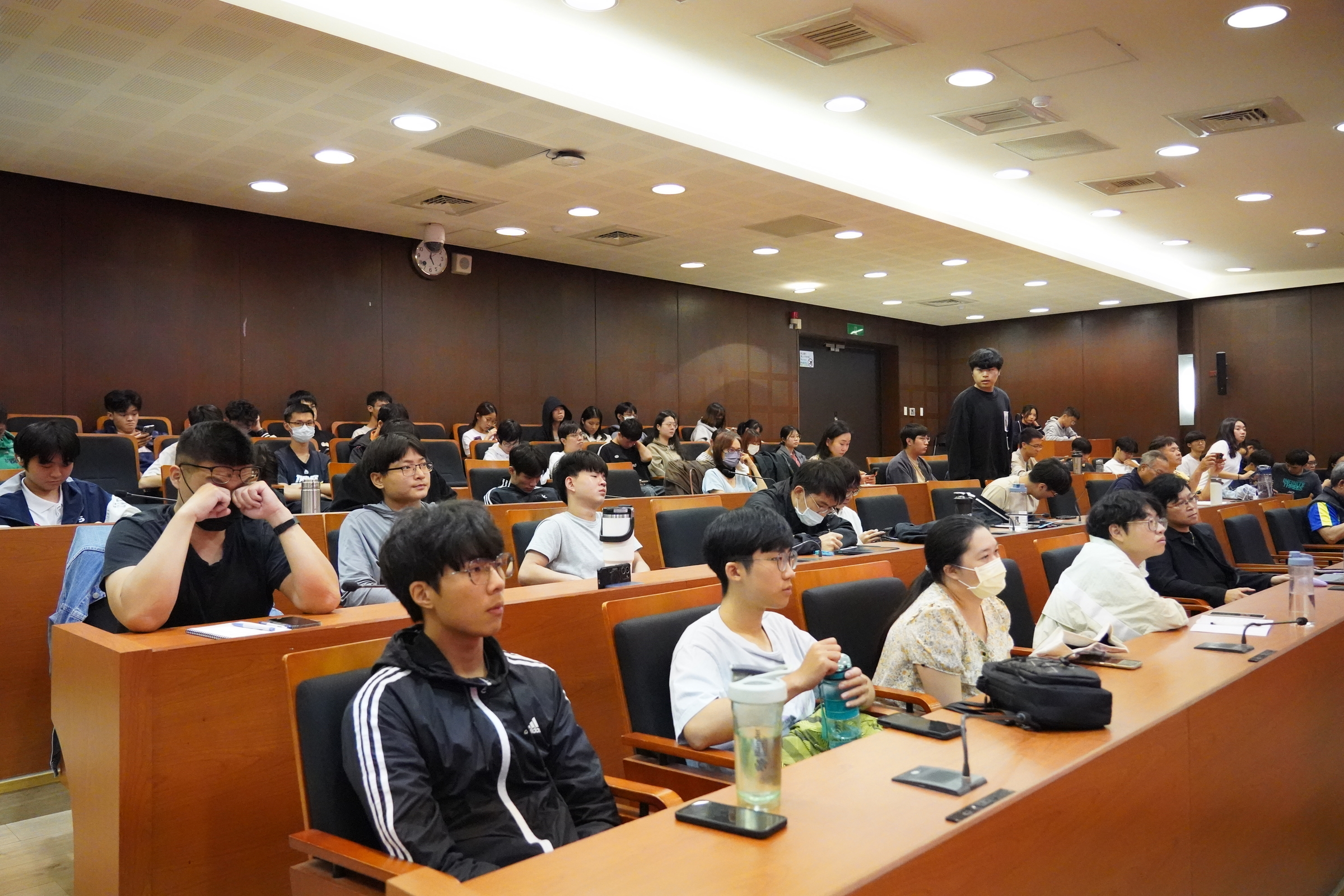 此外,董事長特別以自身經驗談到「健康長壽」的實踐。他提到,保持良好睡眠、適度運動,是他維持活力、持續投入多項社會與創新事務的關鍵。在問答環節中,當學生詢問人文領域在科技快速發展下的前景時,施振榮董事長指出:「人文領域人才不但不會失業,反而會更重要。」他強調,AI 是工具而非答案,更進一步以自己投入文創、表演藝術等領域為例,指出許多議題需要從人性、生活與文化等面向思考,而這些正是人文專長不可替代的價值。