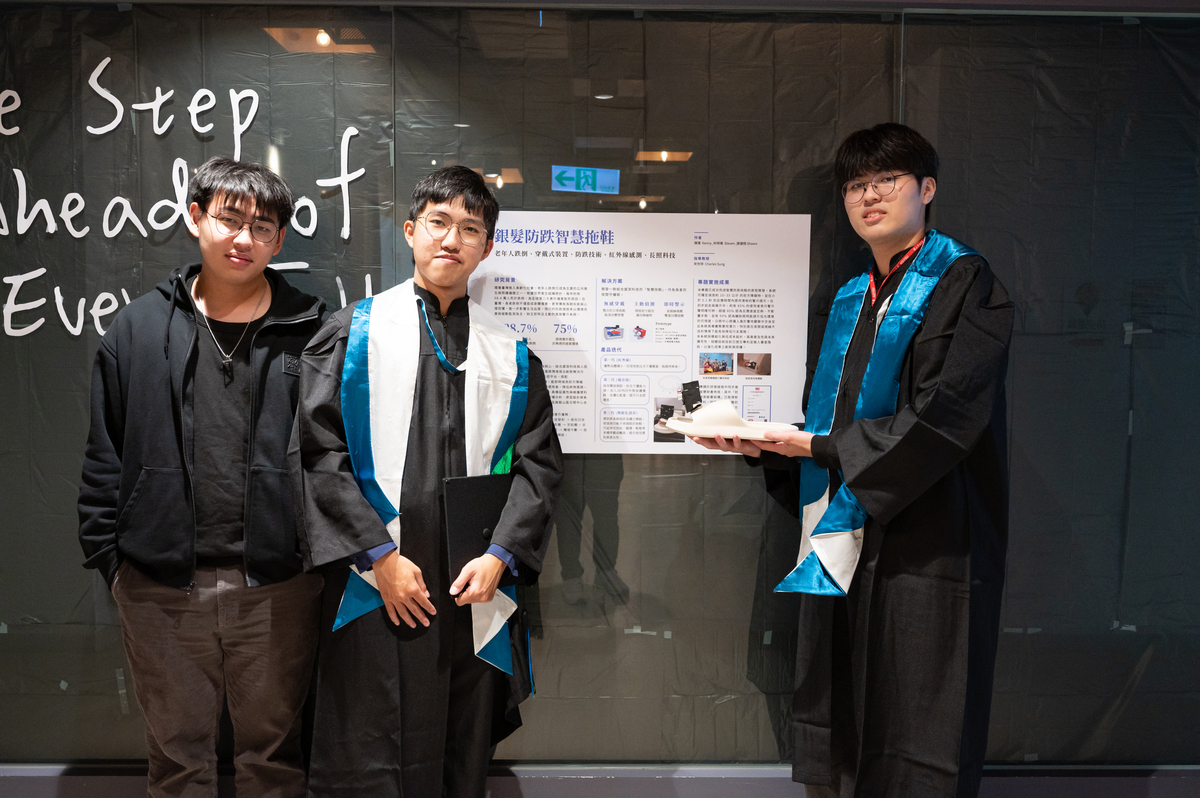 此外針對「技術應用與生活優化」,學生打造校園安全警示系統,以及 AI 電商顧問與美食推薦平台,讓科技具備人文溫度、更貼近生活需求。有團隊開發智慧輔具「銀髮防跌智慧拖鞋」以長者夜間行走安全為出發點,透過感測技術即時提醒前方障礙,降低跌倒風險。而在「社會創新與永續實踐」,學生關注惜食議題、農業轉型及社區公園活化,展現對地方與環境議題的長期觀察。