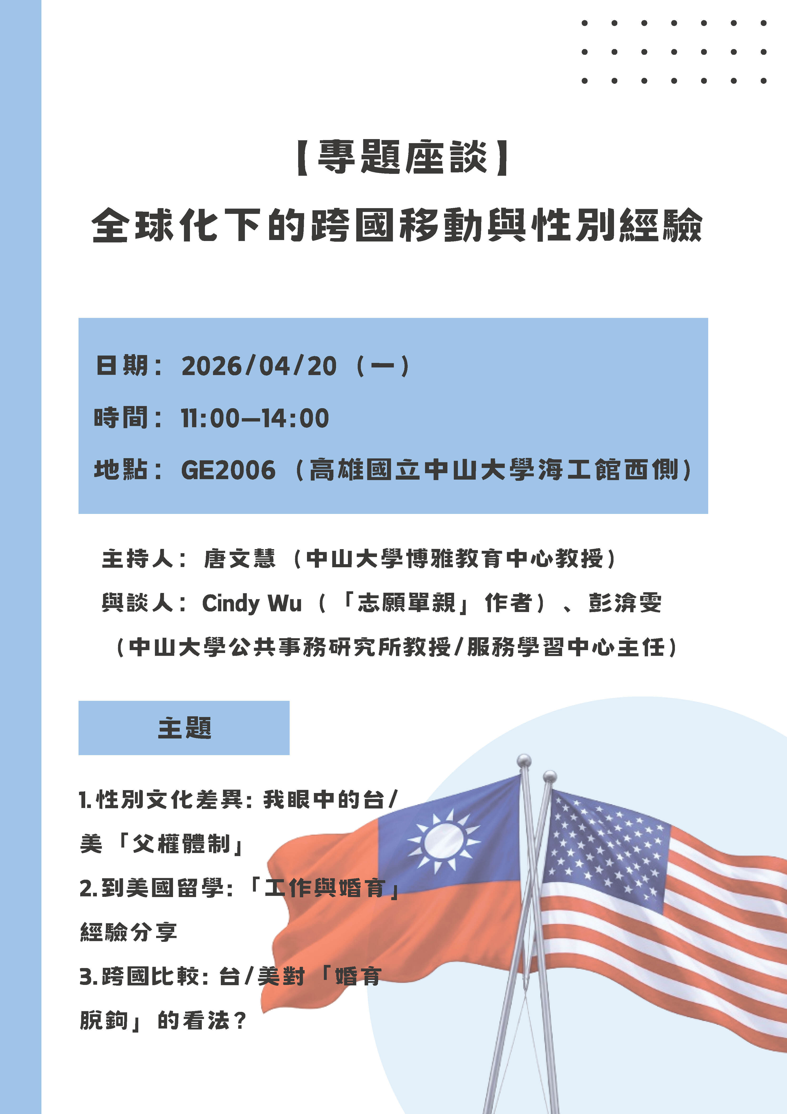 【活動】4/20專題座談-全球化下的跨國移動與性別經驗